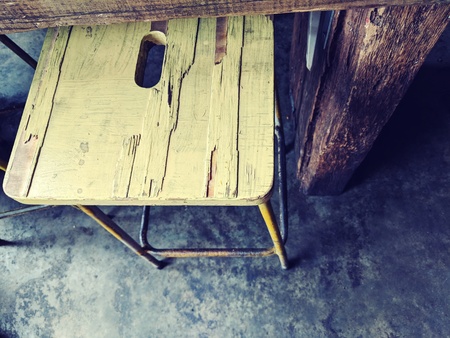 Painted yellow wooden stool in a cafe