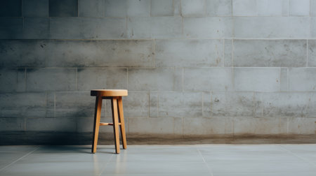 concrete bar stool in a small room with grey walls, showcasing the style of masonry construction. this minimalist piece appeals to abstract minimalism appreciators and embodies classic japanese simplicity. captured with fujifilm pro 800z, the light brown and indigo hues create a rustic scene in this high-definition image. ai generated