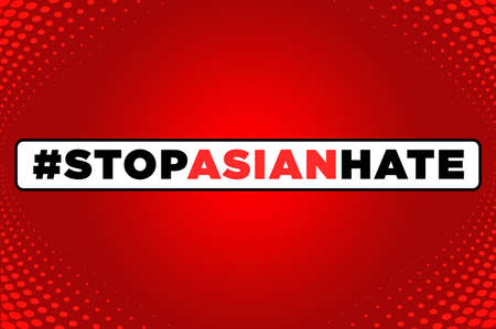 stop Asian hate lettering with red background for new channels