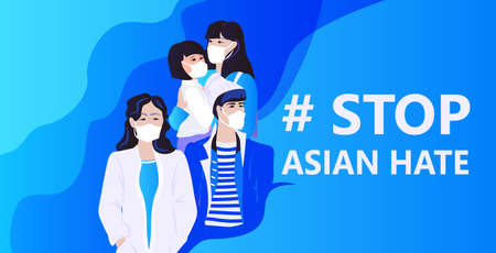stop asian hate activists in masks protesting against racism support people during pandemic concept