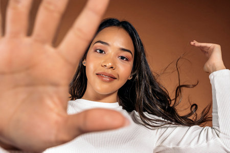 Portrait of an asian woman showing stop gesture