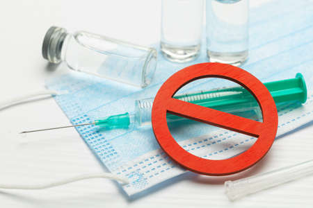 No vaccine. Anti-vaccination. Syringe with vaccine and prohibition sign