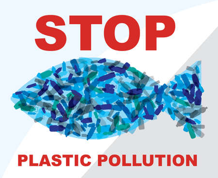 Stop plastic pollution environmental problem vector illustration. Polluted ocean concept