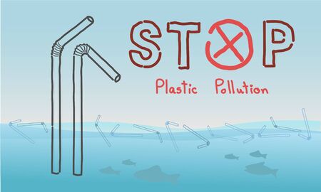 Stop using plastic bottles. Stop plastic pollution vector illustration. Plastic eco problem banner.