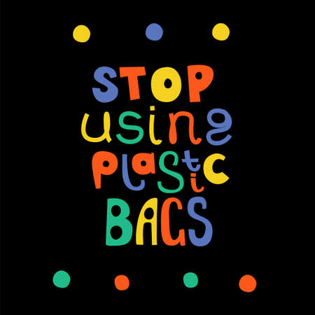 No plastic bags doodle vector lettering. Stock vector illustration for ecological projects and eco friendly motivational banners