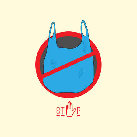 No plastic bag sign with stop typographic design. Vector Illustration.