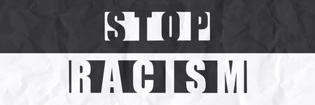 Stop Racism Black Lives Matter die-cut style letters on a crumpled black and white paper