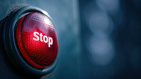 Red stop light with text STOP on a dark background. Conceptual image