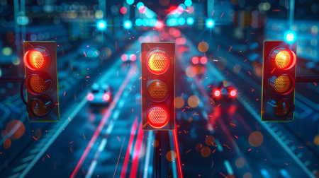Urban Crossroads Illuminated by Traffic Signals Highlighting Automation and Connectivity in Modern Transportation Infrastructure Systems Generative AI