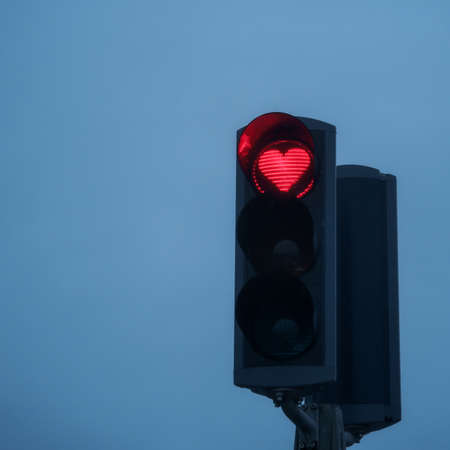 Red light on traffic lights, love shape. Akureyri town, Iceland