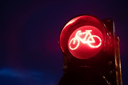 Night bicycle traffic signal, red light, road bike, free bike zone or area, bike sharing