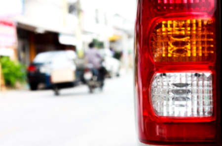 Taillight or rear lamp of car on blur traffic street view background