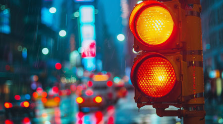 A yellow caution light flashing, warning drivers to slow down and proceed with caution, ensuring safety on the road
