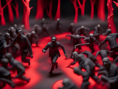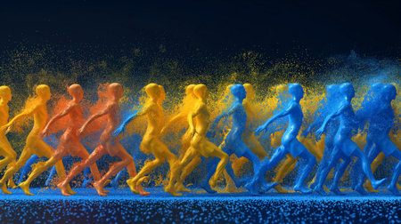 3d rendering of a group of people running in a paint explosion