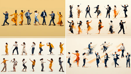 Collection of diverse people celebrating joy through dance and expression