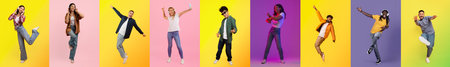 Jumping with joy in a colorful collage of diverse individuals celebrating life