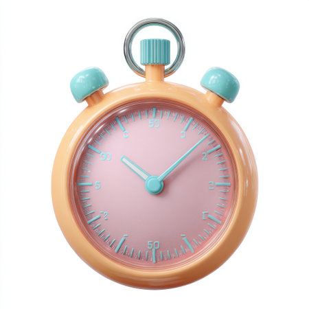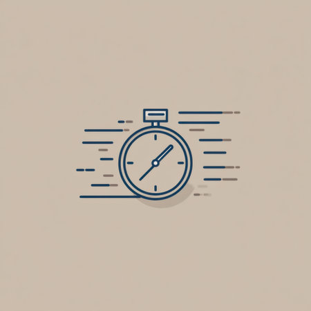 A design of a stopwatch with motion lines conveys urgency and speed, set against a soft beige background. It captures the essence of timing.