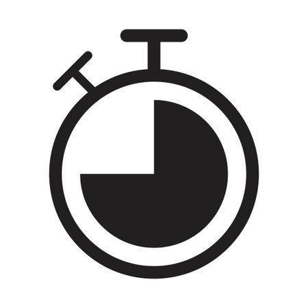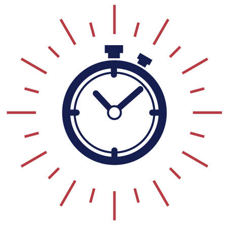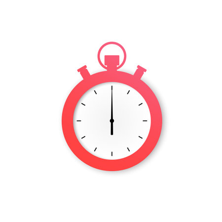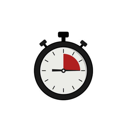 A flat vector illustration of a dark gray stopwatch with a red and white dial The dial is divided into sections indicating elapsed time The design is simple and minimalist against a white background