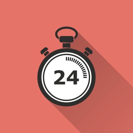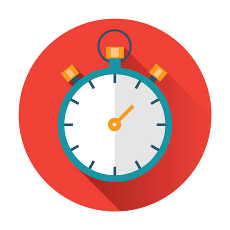 Stopwatch vector icon with long shadow. IIllustration isolated on red background for graphic and web design.