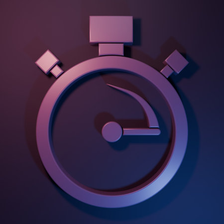 Purple Stopwatch icon isolated on purple-blue background. Time timer sign. Chronometer sign Minimalism concept. 3D render illustration.