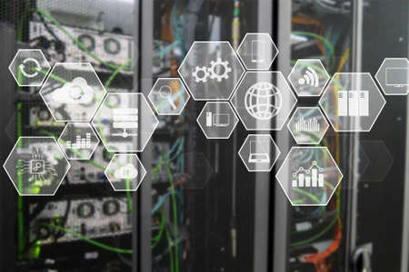 Technology infrastructure cloud technology and communication. Datacenter