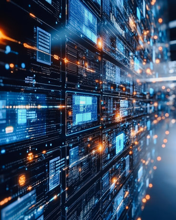 Sleek server racks with glowing LEDs showcase advanced technology and organization in a modern data center.