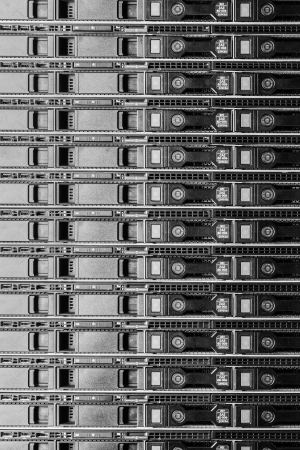 Detail of hard drive cluster in data center