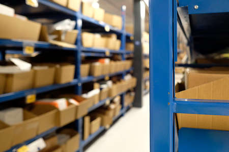 Background photo interior warehouse with carton box retail stock or postal center