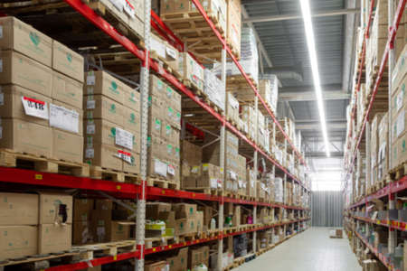 warehouse in the logistics center with boxes ready for shipment, blurred photography, defocus