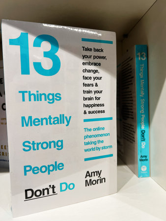 London, UK - December 12, 2025: Book cover of 13 Things Mentally Strong People Don't Do by Amy Morin with bold blue typography.
