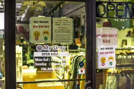 Augusta, Ga USA - 11 22 20: My Story retail store covid-19 door signs