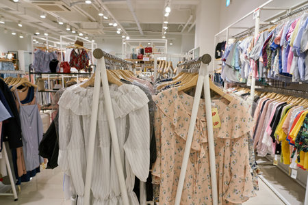 BUSAN, SOUTH KOREA - MAY 28, 2017: inside Uniqlo store at Lotte Department Store in Busan. Uniqlo Co., Ltd. is a Japanese casual wear designer, manufacturer and retailer.