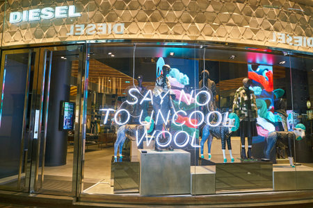 MILAN, ITALY - CIRCA NOVEMBER, 2017: shop window display of clothing at a Diesel store in Milan, Italy.