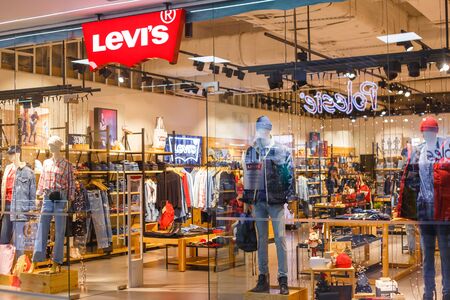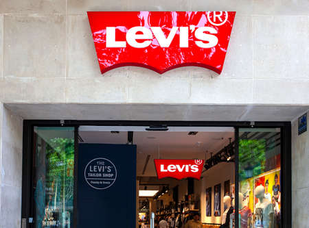 Barcelona, Spain - Jine,06, 2019: entrance to Levi. Levi s is an American maker and retailer of denim clothing