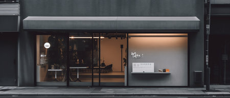 Generative AI Modern Elite Empty Store Front with Big Windows in the Street at Day Light. 3D Renderi