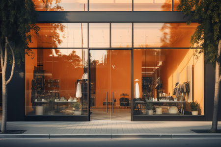 Modern Clothing Boutique Exterior with Large Window Display and Contemporary Interior Design, Ideal for Fashion Retail Concepts and Shopping Experiences - Generative AI