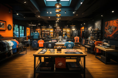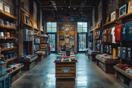 inside tshirt store display room view industrialist style
