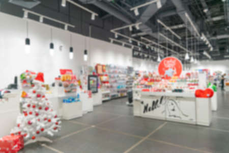 Blurred supermarket. Selling goods in a retail store.