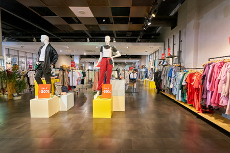 MOSCOW, RUSSIA - SEPTEMBER 14, 2019: interior shot of Reserved store in Salaris shopping mall in Moscow.