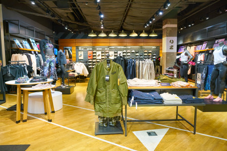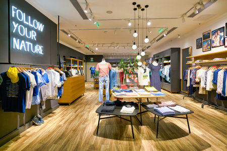 SHENZHEN, CHINA - CIRCA APRIL, 2019: interior shot of Marc O'Polo store at a shopping mall in Shenzhen.