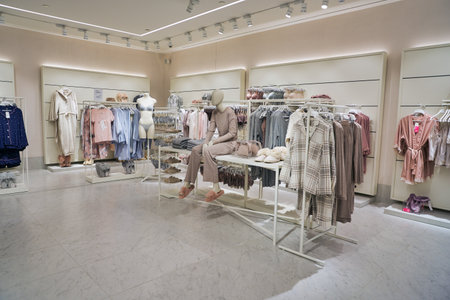 MOSCOW, RUSSIA - CRICA SEPTEMBER, 2018: interior shot of a Zara store in shopping center in Moscow.