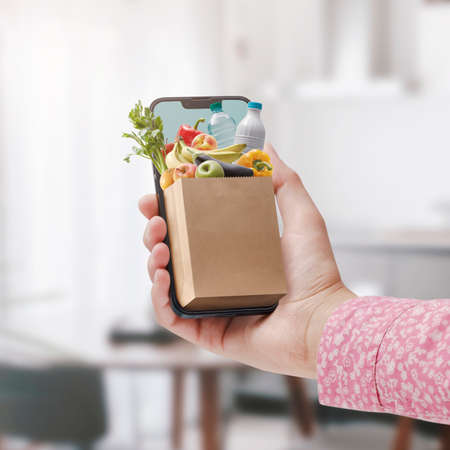 online shopping concept supermarket online phone grocery shopping health food