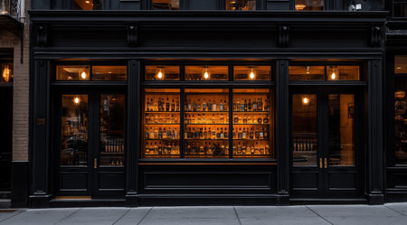 Generative AI, black exterior cafe, restaurant or shop. Urban building, street facade