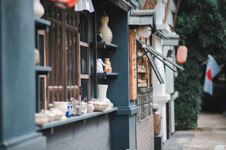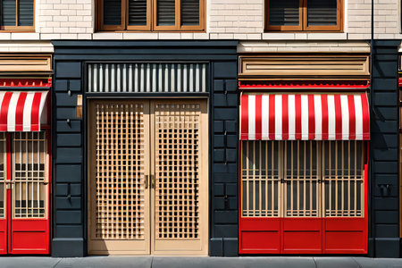 traditional japanese store facade,Japanese restaurant or boutique storefront, Japan. 2d game design