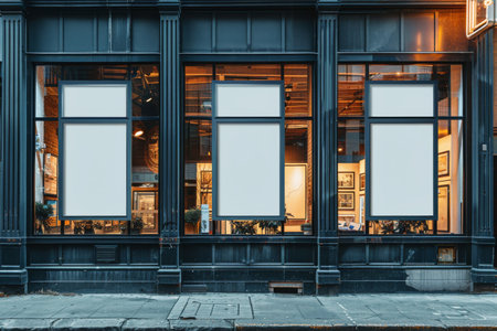 Mockup storefront, shop facade and window. Template for storefront window, classic boutique design. Empty window, retail front, store facade, traditional storefront style. Realistic style photo