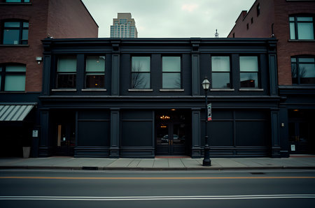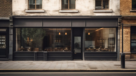 Generative AI, black exterior cafe, restaurant or shop. Urban building, street facade