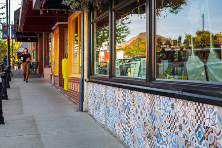 Sidewalk street photo taken during the summer in Ladysmith BC Canada. Exterior of an old building in old town-October 6,2022