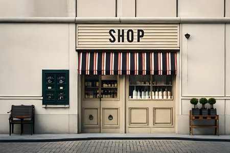 Generative AI : Vintage storefront with black background Tuscany design