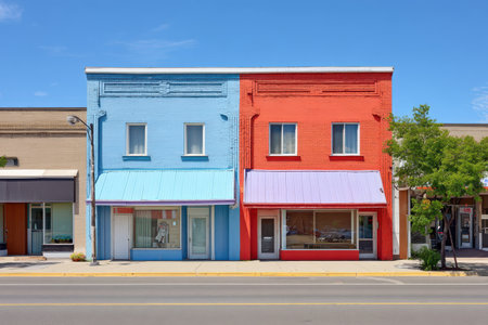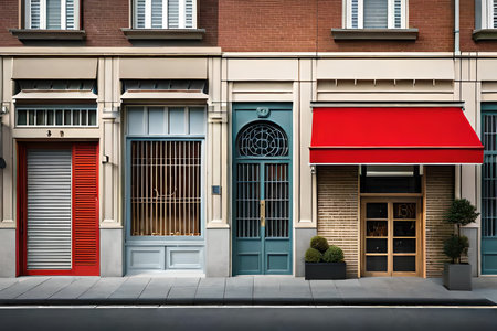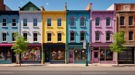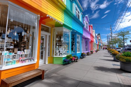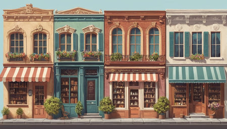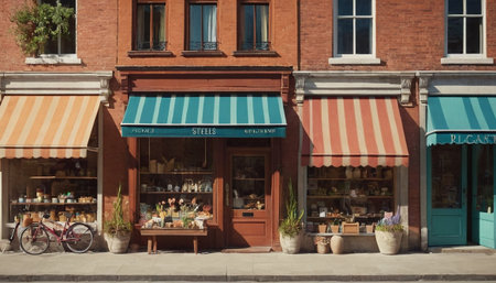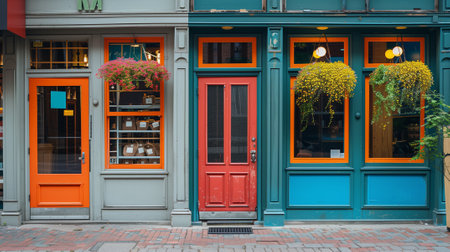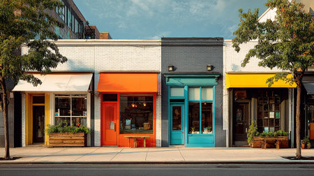 Vibrant and Colorful Storefronts with Hanging Lamps, Urban Retail Architecture and Design
