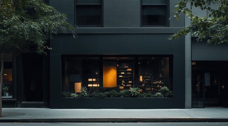 Generative AI beautiful glass facade of the premises for renting a shop. For designers as an example
